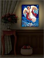 Art is printed on a silky satin cloth, providing sharp detail and vibrant color. It's then mounted on Oregon Pine Wood stretcher bars. Finally, we install our unique LED lighting system enhancing and illuminating the entire painting.