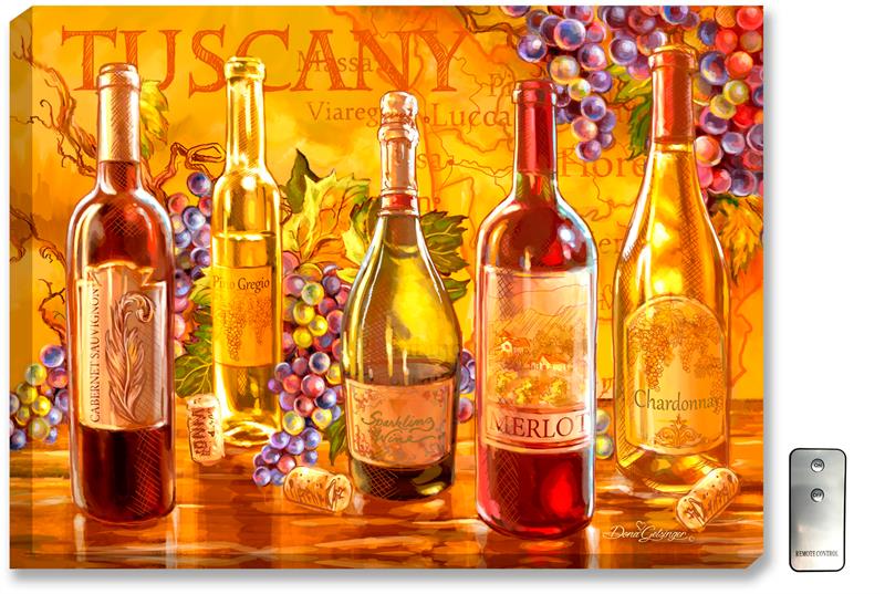 Glow Décor Tuscan Bottles Illuminated Wall Art #D1510 by Dona Gelsinger  |