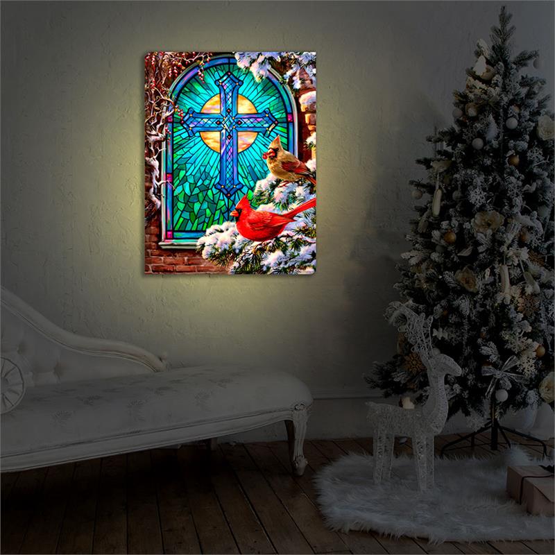 Glow Décor Cardinals Stained Glass Illuminated Wall Art  |