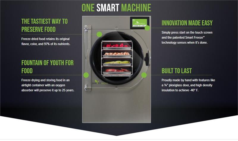 Features and Information on the Large Sized Harvest Right Home Food Freeze Dryer, Black Cabinet: