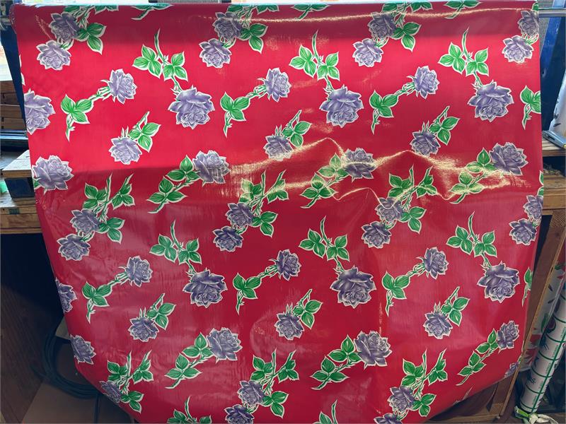 Havana on Red Oil Cloth, Full BoltOilcloth has been around for over a century and when it comes to making a bold color statement anywhere in your home. Oilcloth is a long-lasting, sturdy product that comes in vibrant colors. The oilcloth of yesteryear was resin-coated vinyl and the finish sometimes cracked or flaked. The new version is made of hi-tech plastic that won't crack but has the same colorful shine. Oilcloth has a mesh backing, which means it can really hold a stitch. It can be used for anything that needs to be durable and colorful--tablecloths, upholstered dining room chairs, curtains, bibs, lampshades, tissue boxes, outdoor chairs, etc. Your only limited by your imagination! Oil Cloth measures 48" wide & a full bolt equals 12 continuous yards (36 feet) Don't see the pattern or color you want? Please let us know and we will order it for you!