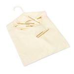 Natural cotton canvas clothes pin bag holds 100 wooden, plastic, or metal clothespins with ease. Includes hanger.