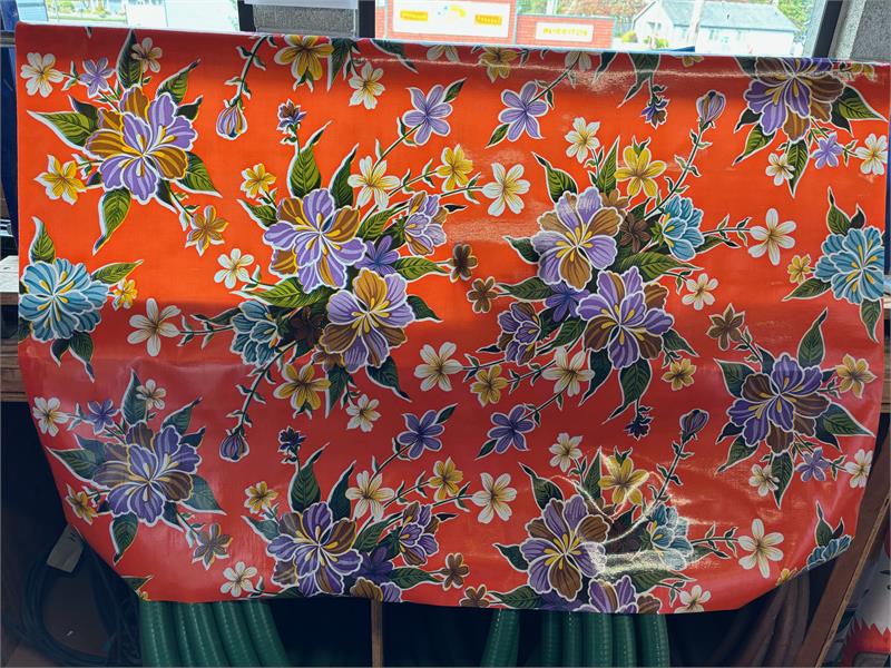 Hibiscus on Orange Oil Cloth, YardageOilcloth has been around for over a century and when it comes to making a bold color statement anywhere in your home.