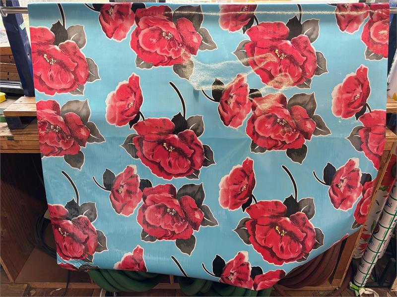 Iceland on Blue Oil Cloth, Full BoltOilcloth has been around for over a century and when it comes to making a bold color statement anywhere in your home. Oilcloth is a long-lasting, sturdy product that comes in vibrant colors. The oilcloth of yesteryear was resin-coated vinyl and the finish sometimes cracked or flaked. The new version is made of hi-tech plastic that won't crack but has the same colorful shine. Oilcloth has a mesh backing, which means it can really hold a stitch. It can be used for anything that needs to be durable and colorful--tablecloths, upholstered dining room chairs, curtains, bibs, lampshades, tissue boxes, outdoor chairs, etc. Your only limited by your imagination! Oil Cloth measures 48" wide & a full bolt equals 12 continuous yards (36 feet) Don't see the pattern or color you want? Please let us know and we will order it for you!