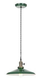 Modern Style Industrial Pendant Lighting fixture with 12" Hunter Green enamel shade.