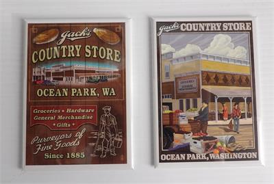 Set of 4 sturdy ceramic coasters with our popular Jack's Storefront image! Highly absorbent, fade-resistant image, and cork-backed to protect surfaces. Printed in the USA. Each coaster measures 4" x 4".
