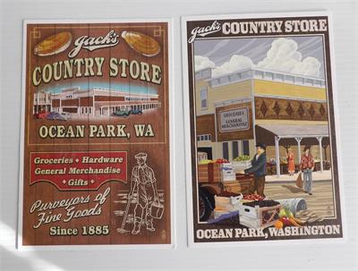 Set of 4 sturdy ceramic coasters with our popular Jack's Storefront image! Highly absorbent, fade-resistant image, and cork-backed to protect surfaces. Printed in the USA. Each coaster measures 4" x 4".