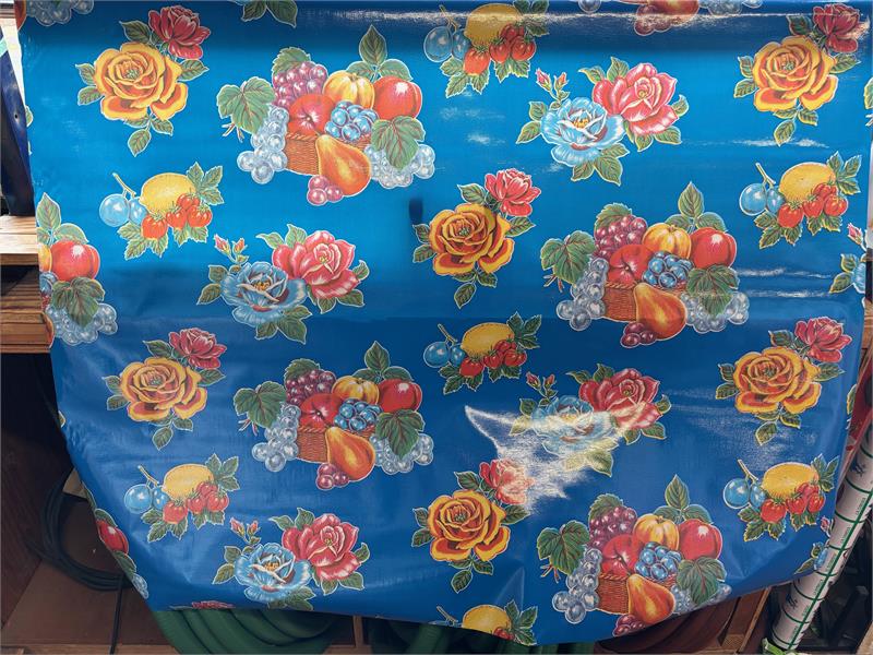 Lemons on Blue Oil Cloth, Full BoltOilcloth has been around for over a century and when it comes to making a bold color statement anywhere in your home. Oilcloth is a long-lasting, sturdy product that comes in vibrant colors. The oilcloth of yesteryear was resin-coated vinyl and the finish sometimes cracked or flaked. The new version is made of hi-tech plastic that won't crack but has the same colorful shine. Oilcloth has a mesh backing, which means it can really hold a stitch. It can be used for anything that needs to be durable and colorful--tablecloths, upholstered dining room chairs, curtains, bibs, lampshades, tissue boxes, outdoor chairs, etc. Your only limited by your imagination! Oil Cloth measures 48" wide & a full bolt equals 12 continuous yards (36 feet) Don't see the pattern or color you want? Please let us know and we will order it for you!