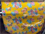Lemons on Yellow Oil Cloth, Full Bolt Oilcloth has been around for over a century and when it comes to making a bold color statement anywhere in your home. Oilcloth is a long-lasting, sturdy product that comes in vibrant colors. The oilcloth of yesteryear was resin-coated vinyl and the finish sometimes cracked or flaked. The new version is made of hi-tech plastic that won't crack but has the same colorful shine. Oilcloth has a mesh backing, which means it can really hold a stitch. It can be used for anything that needs to be durable and colorful--tablecloths, upholstered dining room chairs, curtains, bibs, lampshades, tissue boxes, outdoor chairs, etc. Your only limited by your imagination! Oil Cloth measures 48" wide & a full bolt equals 12 continuous yards (36 feet) Don't see the pattern or color you want? Please let us know and we will order it for you!