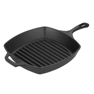 Lodge Cast Iron 10.5" Square Grill Pan #L8SGP3 Pre-Seasoned American Made Cast Iron CookwareThe Lodge Cast Iron Grill Pan allows grease to drain away from the food while creating tantalizing grill marks. This square grill pan is seasoned and ready to use and perfect for cooking bacon, steaks and more. About Lodge Manufacturing, the largest USA based Cast Iron Cookware maker: