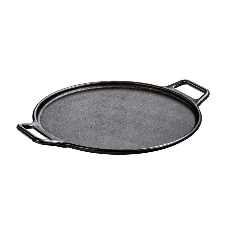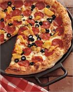 Lodge Logic 14" Pizza / Roasting Pan Pre Seasoned Cast Iron #P14P3 American Made Cast Iron BakewareThe Pizza/Roasting Pan from Lodge Manufacturing gives your pizza a golden crust every time and the heat retention properties of cast iron keep it piping hot until the last slice. The even heat distribution of cast iron enhances the flavor of roasted vegetables, pork chops, chicken and beef. The seasoned 14inch pan with loop handles features even heating and excellent heat retention for golden pizza crust every time. Recipe card included. About Lodge Manufacturing, the largest USA based Cast Iron Cookware maker:
