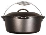 Lodge Cast Iron 5 Quart Dutch Oven with Bail Handle #L8DO3 Pre-Seasoned American Made Cast Iron CookwareThe Lodge Cast Iron Dutch Oven is a multi-functional cookware that works wonders with slow-cooking recipes. It comes with a tight-fitting lid that helps lock in nutrition and flavor. This pre-seasoned Dutch Oven works like a charm right out of the box. Made of cast iron, this Dutch Oven evenly distributes heat from the bottom through the sidewalls. Also, it retains heat better so your delicious meal remains warm for a long time. Sporting a stylish black color, the cast iron Dutch Oven looks good in most kitchens and it doubles up as an excellent source of nutritional iron. It features loop handles for convenient handling and the oven is easy to clean and maintain. A simple Cast-Iron Dutch Oven, like the one your grandmother used, still ranks as one of the best cooking utensils ever made. It gives you a nearly non-stick surface, without the possible harmful fumes generated by preheating chemically treated nonstick cookware. The Lodge Traditional Dutch Oven with Wire Bail handle has been popular for over a century, and is perfect for camp and hearth cooking. The L8DO3 features a 5 quart capacity, 10 1/4" diameter, 4" depth. Weight is 13 pounds. Lodge Dutch Ovens deliver superior cooking performance, garnering Cook’s Illustrated’s “Best Buy Award.” The original slow cooker, Cast Iron Dutch Ovens have been a kitchen staple in American homes for centuries. Every Lodge Dutch Oven comes complete with matching lid. Use this dutch oven on all cooking surfaces, grills, and campfires. It's also oven safe. All of Lodge Cast Iron is foundry seasoned, meaning that it's ready to use upon purchase. About Lodge Manufacturing, the largest USA based Cast Iron Cookware maker: