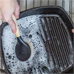 This stiff bristled brush is specifically designed for easy cleaning of your cast iron pieces. Clean cast iron pots, pans, skillets, and more. Ergonomic shape grips easily in the hand and is comfortable to use. The natural wood handle has a lacquer finish and helps to repel water. The brush head features an embossed Lodge logo on a skillet shaped head. Bristles have a strong adhesion to the head of the brush for long lasting use. When cleaning the brush, hand wash only for best results.