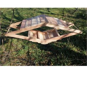 This large capacity feeder features an overhanging roof that keeps the seed dry. At nearly 3 feet long, this feeders is great for providing unencumbered views of the birds. This design is inspired by Frank Lloyd Wright, it contains three separate trays to allow for a variety of seeds. This item proudly made in the U.S.A.