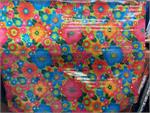 London on Light Blue Oil Cloth, Full Bolt on 12 Yards. Oilcloth yardage that brings to mind the Swingin' 70's in London. Groovy, baby! Great big flowers popping and bright colors inspired by Carnaby Street.