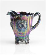 Beautiful embossed Dahlias pattern in iridescent Purple Carnival glass.