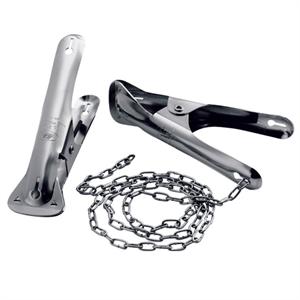 Malco 2DH Pipe and Duct Holder has two powerful clamps and four feet of 125 lb. tensile strength linked chain. Set hold duct in place, either between or under joists until it is properly secured. This tool is also ideal for installing fiberglass duct, link chain will not puncture foil skin. These holders are tuff the clamps and chain are nickel plated steel.
