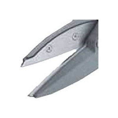 Specially ground blades aluminum handled. Versatile for cutting sheet metal stock, including duct work or aluminum, steel and vinyl siding. Rugged cast aluminum frame is only half the weight of comparable size forged steel snips; reinforcing handle ribs provide all the leverage needed to cut through hardened sheet metal, even seams, fast and easy. The frame's smooth profile allows cut material to flow unobstructed, away from the user's hand. Rounded contours fit the hand comfortably, and aluminum will notfeel cold. Separate inlaid blade components permit the use of cutlery grade high-carbon steel that is heat treated and tempered to stay sharper, longer, through continuous heavy duty use. Replaceable blades. Metallic gray finish.