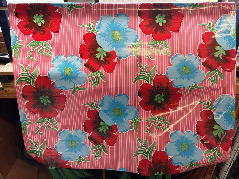 Mali on Pink Oil Cloth,Yardage Oilcloth has been around for over a century and when it comes to making a bold color statement anywhere in your home. Oilcloth is a long-lasting, sturdy product that comes in vibrant colors. The oilcloth of yesteryear was resin-coated vinyl and the finish sometimes cracked or flaked. The new version is made of hi-tech plastic that won't crack but has the same colorful shine. Oilcloth has a mesh backing, which means it can really hold a stitch. It can be used for anything that needs to be durable and colorful--tablecloths, upholstered dining room chairs, curtains, bibs, lampshades, tissue boxes, outdoor chairs, etc. Your only limited by your imagination! Oil Cloth measures 48" wide & a full bolt equals 12 continuous yards (36 feet) Don't see the pattern or color you want? Please let us know and we will order it for you!