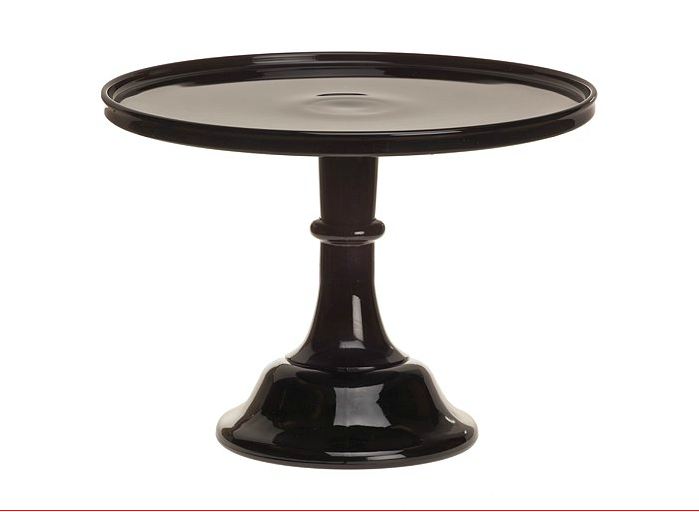 Cupcakes, appetizers, cut flowers, and party favors also look fancy when put on this deep purple glass cake stand. Opaque Black Raspberry color glass. 10" diameter.