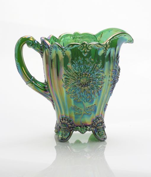 Mosser Glass Green Carnival 48 ounce Dahlias Pitcher #902PHGC