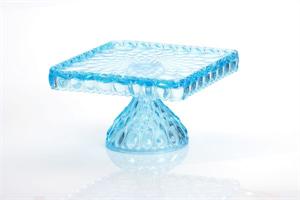 Mosser Glass Aqua Blue Crystal Elizabeth Cake Plate #234CPAQMosser's Elizabeth Style Cake Stand can be used for a variety of displays. From cakes, to cupcakes and appetizers, to savory treats, the embellished Elizabeth style cake plate is a great choice. The Elizabeth Cake Stand is a square topped cake plate with a rounded foot. The Elizabeth design has a crown style embossed design. Mosser's Elizabeth Cake Stand measures 10" wide x 6.5" high. Pair the Elizabeth Cake Stand with Mosser's opalescent or Milk Glass Cake plates for a stunning tablescape. Mosser's Aqua Blue Crystal glass color is simply stunning. The Aqua Blue glass is suitable for many different decors and themes. From bridal showers to anniversary parties, to fancy table settings the Aqua Blue Crystal color from Mosser is sure to be the centerpiece of any tablescape. The craftsmen at Mosser Glass have been producing quality American Made Glassware since the 1950s. Mosser Glass produces high quality glassware made with fine craftsmanship. Each piece of Mosser Glass is hand blown and hand finished. Many pieces are made to order. Please allow 1-2 weeks for delivery. Proudly Made in the U.S.A.