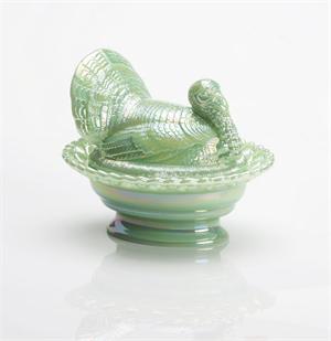 Mosser Glass Jadeite Carnival Covered Turkey Dish #181JC