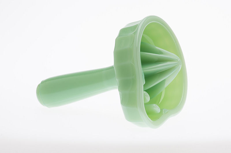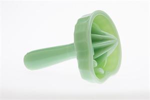 Mosser Glass Jadeite Hand Reamer/Juicer #248JMosser's glass hand Reamer allows you to easily juice lemons, limes, and other small citrus with ease. The unique shape of this juicer collects the citrus juice while allowing you flexibility with the handle. Our American made hand citrus reamer is designed to offer years of service. Jadeite Glass, also know and Fire King Jade-Ite, is a Jade Green color of opaque milk glass. Popular during the Depression Era, Mosser Glass offers Jadeite Green with today's quality. Jadeite Green is a beautiful color in any kitchen, wedding, or party setting. The craftsmen at Mosser Glass have been producing quality American Made Glassware since the 1950s. Mosser Glass produces high quality glassware made with fine craftsmanship. Each piece of Mosser Glass is hand blown and hand finished. Many pieces are made to order. Please allow 1-2 weeks for delivery. Proudly Made in the U.S.A.