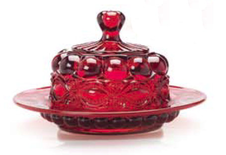 Mosser Glass Red Eye Winker Butter Dish with Lid #409BRMosser's Eye Winker pattern comes from the Victorian Era of fancy patterned glassware, and is popular today as well. The Eye Winker gets is name due to the oval or eye shaped design in the lower portion of the glassware. The upper portion of the Eye Winker design features vertical ribs. The Eye Winker butter dish measures 7.75" deep x 4.5" high. Complete your Eye Winker serving setting with this pretty glass butter dish. This red glass butter dish also serves dips, cheese balls, and spreads in style. Mosser's Red glass is made using a bit of gold for a great Red glass color. The Red Glass is a stunning table piece, standing out in any setting or decor. The craftsmen at Mosser Glass have been producing quality American Made Glassware since the 1950s. Mosser Glass produces high quality glassware made with fine craftsmanship. Each piece of Mosser Glass is hand blown and hand finished. Many pieces are made to order. Please allow 1-2 weeks for delivery. Proudly Made in the U.S.A.