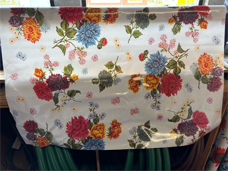 Mums on White Oil Cloth, Yardage