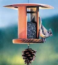 The Songbird Lantern Feeders are a gorgeous addition to any yard. They feature top-loading hopper that makes refilling easy. The bottom perch is removeable for easy cleaning. This well designed feeder features a lid that protects the seed from the elements and the bowl contains drain holes to prevent standing water. Made from beautiful redwood and glass, also includes decorative pinecone. This item proudly made in the U.S.A.