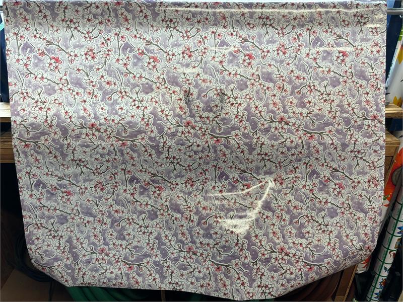 Fuji on Lilac Purple Oil Cloth, Full BoltOilcloth has been around for over a century and when it comes to making a bold color statement anywhere in your home. Oilcloth is a long-lasting, sturdy product that comes in vibrant colors. The oilcloth of yesteryear was resin-coated vinyl and the finish sometimes cracked or flaked. The new version is made of hi-tech plastic that won't crack but has the same colorful shine. Oilcloth has a mesh backing, which means it can really hold a stitch. It can be used for anything that needs to be durable and colorful--tablecloths, upholstered dining room chairs, curtains, bibs, lampshades, tissue boxes, outdoor chairs, etc. Your only limited by your imagination! Oil Cloth measures 48" wide & a full bolt equals 12 continuous yards (36 feet) Don't see the pattern or color you want? Please let us know and we will order it for you!