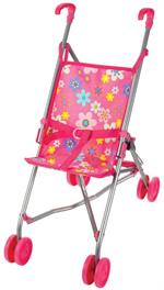 This adorable stroller from My Sweet Baby is made for dolls 18 inches or smaller. Folds up easily for convenient storage or transport. Features a fabric seat with a nylon safety belt, contoured plastic handles, a gray metal frame, and pink plastic wheels.