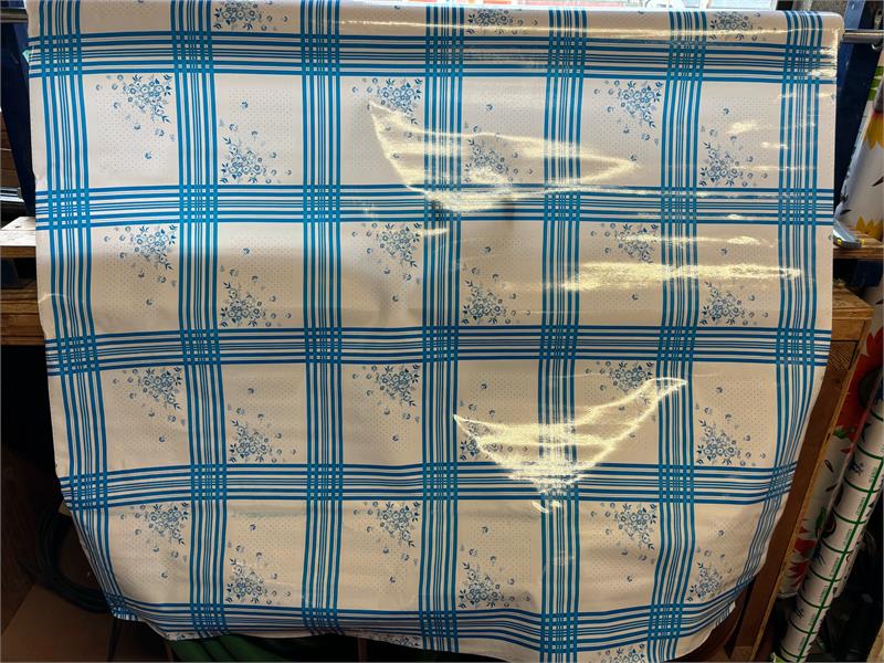 Oslo Blue Oil Cloth, Full BoltOilcloth has been around for over a century and when it comes to making a bold color statement anywhere in your home. Oilcloth is a long-lasting, sturdy product that comes in vibrant colors. The oilcloth of yesteryear was resin-coated vinyl and the finish sometimes cracked or flaked. The new version is made of hi-tech plastic that won't crack but has the same colorful shine. Oilcloth has a mesh backing, which means it can really hold a stitch. It can be used for anything that needs to be durable and colorful--tablecloths, upholstered dining room chairs, curtains, bibs, lampshades, tissue boxes, outdoor chairs, etc. Your only limited by your imagination! Oil Cloth measures 48" wide & a full bolt equals 12 continuous yards (36 feet) Don't see the pattern or color you want? Please let us know and we will order it for you!