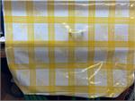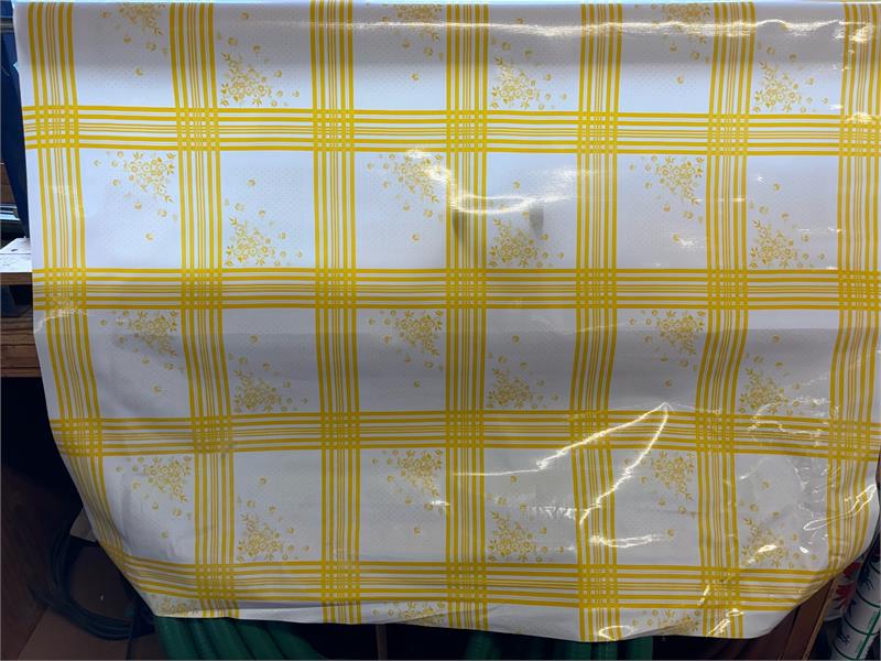 Oslo Yellow Oil Cloth, Full BoltOilcloth has been around for over a century and when it comes to making a bold color statement anywhere in your home. Oilcloth is a long-lasting, sturdy product that comes in vibrant colors. The oilcloth of yesteryear was resin-coated vinyl and the finish sometimes cracked or flaked. The new version is made of hi-tech plastic that won't crack but has the same colorful shine. Oilcloth has a mesh backing, which means it can really hold a stitch. It can be used for anything that needs to be durable and colorful--tablecloths, upholstered dining room chairs, curtains, bibs, lampshades, tissue boxes, outdoor chairs, etc. Your only limited by your imagination! Oil Cloth measures 48" wide & a full bolt equals 12 continuous yards (36 feet) Don't see the pattern or color you want? Please let us know and we will order it for you!