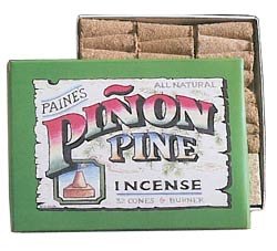 Paine's Products Natural Pinon Pine Tree Incense Cones 32 cone shaped incense, measuring 1/4" tall with 1/2" base. Includes an incense burner for the Pinon Pine scented incense cones.