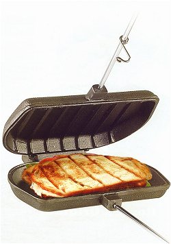 Rome's Original Panini Press Cooker From the foremost designer of Pie Irons comes a new sandwich press designed specifically for grilled Italian Panini sandwiches. Featuring a generous cooking surface of 8" X 4" and made from heavy cast iron to insure uniform and solid pressure on the sandwich as it toasts, Rome's Panini Press makes cafe quality sandwiches with ease, style, and verve. To use, simply place your sandwich inside the open cavity of the cooker, close the lid, and place on a BBQ grill, stovetop burner, or campfire. After a few minutes, flip the Panini Press over and continue cooking until the sandwich is hot and toasted. Each Rome Panin Press also comes with a wide variety of classic recipes. 5 Year Warranty