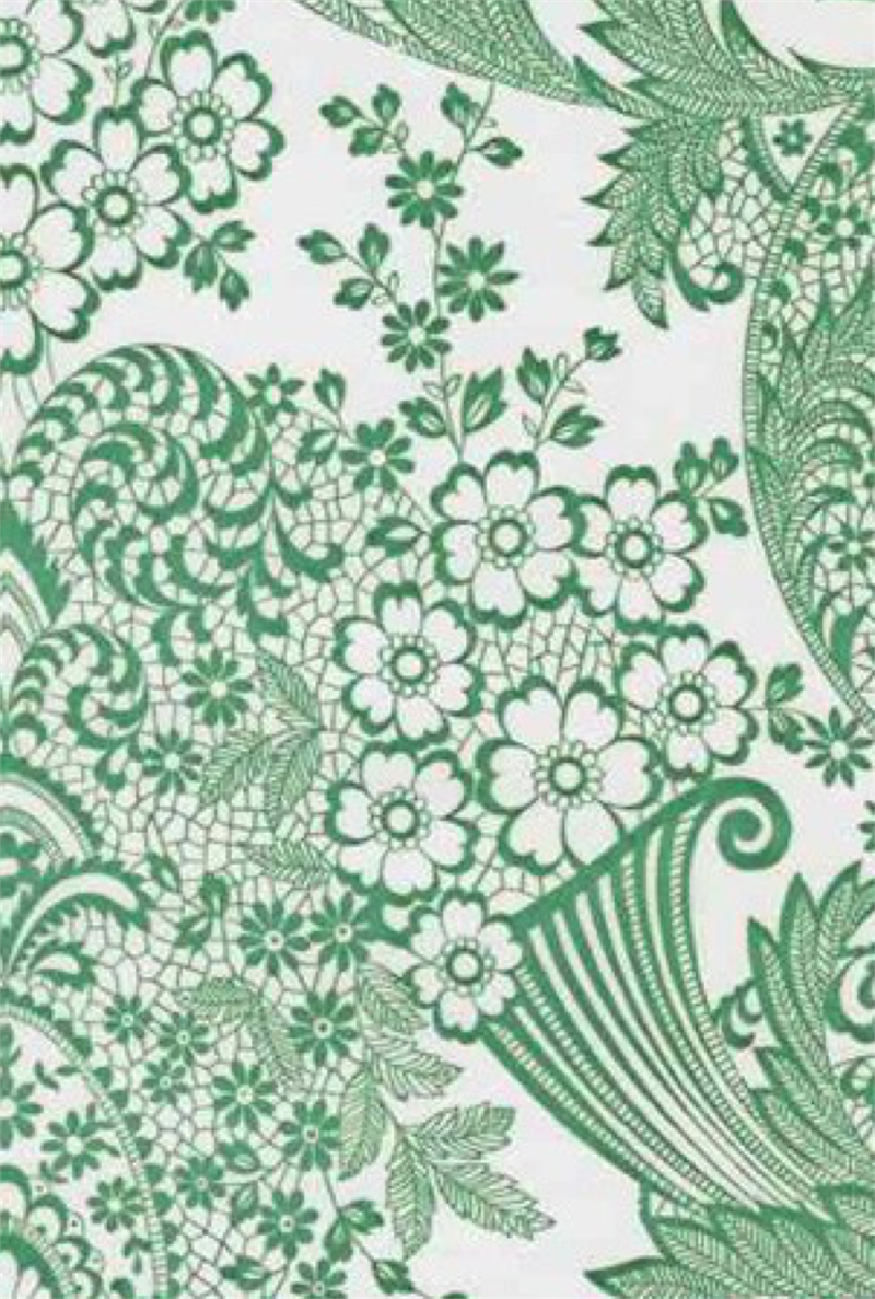 Paradise Lace Green on White Oil Cloth, Yardage