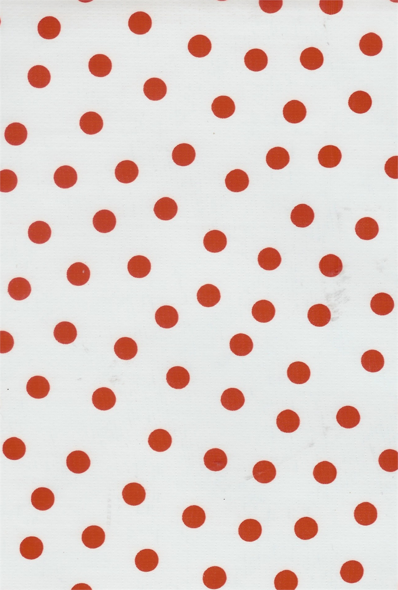 Polka Dots Red on White Oil Cloth, YardageOilcloth has been around for over a century and when it comes to making a bold color statement anywhere in your home. Oilcloth is a long-lasting, sturdy product that comes in vibrant colors. The oilcloth of yesteryear was resin-coated vinyl and the finish sometimes cracked or flaked. The new version is made of hi-tech plastic that won't crack but has the same colorful shine. Oilcloth has a mesh backing, which means it can really hold a stitch. It can be used for anything that needs to be durable and colorful--tablecloths, upholstered dining room chairs, curtains, bibs, lampshades, tissue boxes, outdoor chairs, etc. Your only limited by your imagination! Oil Cloth measures 48" wide & a full bolt equals 12 continuous yards (36 feet) Don't see the pattern or color you want? Please let us know and we will order it for you!Download a sewing pattern with complete instructions that you can print out at home to make an adorable bib with these oil cloth materials courtesy of Oilcloth.com. Click Here