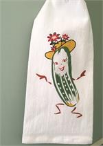 Red and White Kitchen Retro Mrs. Pickle Flour Sack Towel 100% Cotton |