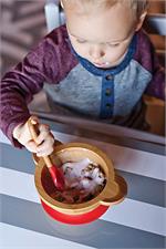 De-stress mealtime with Red Rover Bamboo Bowl and Spoon kid-friendly, mom-approved dinnerware! This set includes a kid-sized bowl and spoon, both constructed of sustainable materials, making them biodegradable and . Featuring an adorable animal design, The bowl is shaped as a monkey (its ears double as handles!), and, best of all, is equipped with a meal-saving suction cup base to prevent flipping, dumping, and throwing! Fussy babies and temper Tantrums don't stand a chance to this stay-put bowl. The bamboo fiber handles are ergonomic and easy to hold for both assisting parents and tiny toddler hands! Bright, cheerfully colored tip of spoon is made of soft silicone, which is safe and gentle enough for teething gums. Only the best for baby, These utensils are non-toxic and free of plastic, lead, and harmful chemicals. Make the transition to self-feeding painless, with less mess.