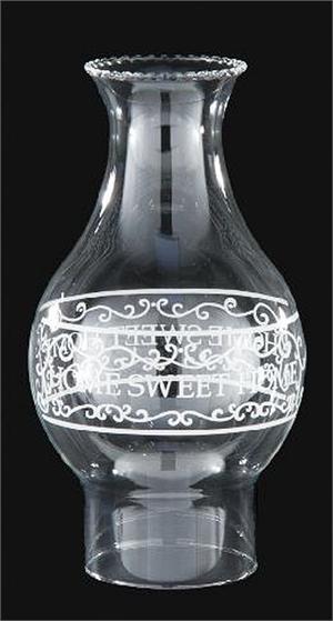 3" X 8 3/4" "Home Sweet Home" Clear Glass Oil Lamp Chimney