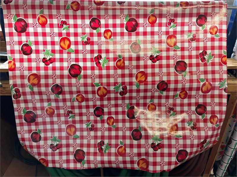 Riverside on Red Oil Cloth, YardageOilcloth has been around for over a century and when it comes to making a bold color statement anywhere in your home. Oilcloth is a long-lasting, sturdy product that comes in vibrant colors. The oilcloth of yesteryear was resin-coated vinyl and the finish sometimes cracked or flaked. The new version is made of hi-tech plastic that won't crack but has the same colorful shine. Oilcloth has a mesh backing, which means it can really hold a stitch. It can be used for anything that needs to be durable and colorful--tablecloths, upholstered dining room chairs, curtains, bibs, lampshades, tissue boxes, outdoor chairs, etc. Your only limited by your imagination! Oil Cloth measures 48" wide & a full bolt equals 12 continuous yards (36 feet) Don't see the pattern or color you want? Please let us know and we will order it for you!