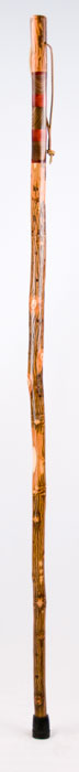 The Safari Padauk/Walnut/Bocote Walking Stick is unique and stylish. You'll be proud to own this one-of-a-kind walking staff, and it's sure to turn heads as you walk securely through serene neighborhoods or arduous, mountainous hiking trails. To make the Safari Padauk/Walnut/Bocote Walking Stick we take our ever-popular Hickory Walking Stick and accent it with an exotic wood handle comprised of padauk, walnut, and bocote. The final product is a stunning beauty that's strong, durable, and highly functional. Each piece of hickory is carefully chosen, cut, sanded, and sprayed with a protective, clear coat lacquer, magnifying the wood's innate beauty. Our craftsmen scrutinize each detail in this handcrafted masterpiece, and the finished product will feel like a treasure in your hand. This handcrafted walking stick is available in three convenient sizes: 48-inches, 55-inches, and 58-inches. This staff comes with a standard rubber ferrule for a firm, secure grip on virtually any surface. For serious hiking, the rubber ferrule can also be upgraded to a spike ferrule, combination spike ferrule, or our top-of-the line Lee Valley Spike. Like all of our finely crafted walking sticks and canes, this walking stick is made in the USA by our skilled craftsmen using the highest quality wood and time-tested methods Proudly Made in the U.S.A.