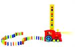 Chug your way into fun with our domino train! Fill the cartridge and start the train to lay your domino trail. A motorized train that works like magic, the Domino Train from Schylling Toys the world leader in traditional toys and classic fun will set dominoes up on end automatically as is chugs across the floor. Just load the domino cartridge and place it in the train, set the path by steering with the smokestack and the engine plays lively sounds as it set the dominoes. As if by magic, all the dominos are placed on end and perfectly spaced. The headlight lights up to guide you along. Once set, have fun knocking them down in in classic domino fashion.