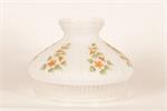 10" hand blown American-made opal glass student shade with "English Roses" decoration on a white background. Fits most non-electric, oil, coal oil or kerosene table lamps with 10" shade support. Classic student lamp shade shape with hand-painted floral.