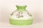 10 inch fitter Opal Glass Student Shade with plain top and hand painted Victorian Roses Scene on a peach and celery tint, 7 inches tall.