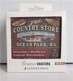 Set of 4 sturdy ceramic coasters with our popular Jack's Catalog image! Highly absorbent, fade-resistant image, and cork-backed to protect surfaces. Printed in the USA. Each coaster measures 4" x 4".
