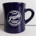 Feel right at home with our Jack's logo tapered diner mug! Designed with extra-thick walls and a glossy finish. Thick handle keeps your fingers farther from piping hot drinks! This stylish mug is built extra sturdy like those great diner mugs!