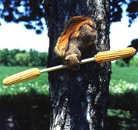 Squirrels attempt a balancing act to reap the reward, a corn treat. Holds 2 cobs of corn.